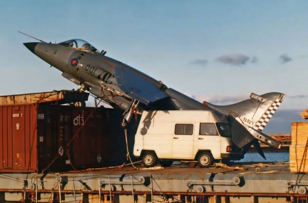 Hlavní podvozek přepadl přes zadní hranu kontejnerů a nebýt přepravované dodávky květinářství z Tenerife, o kterou se zastavila zadní část letounu, mohly být následky nouzového přistání mnohem horší. Zaklíněný Sea Harrier na palubě posádka zajistila bezpečnostními řetězy.